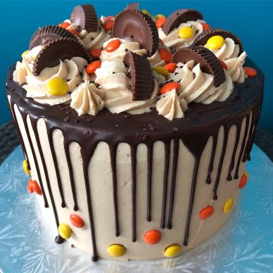 - My nephew had his Confirmation this month and I made him a monster Peanut Butter Explosion cake (pictured above). It was basically this cake (minus the caramel & peanut filling), with three layers of chocolate cake, peanut butter frosting, and a chocolate drip with Reeses décor. He loved it!