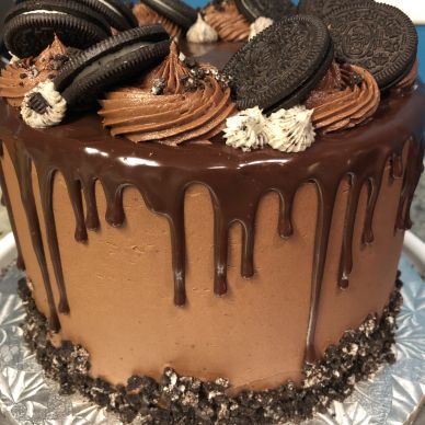 - My second cake project of the month was an epic birthday cake for my friend Jen’s dad’s 65th Birthday. I can’t even express how much I love this family, so I really went all out. This cake (pictured above) was three 8″ layers of chocolate cake, with a cookies and cream filling (basically cream cheese frosting with crushed Oreos), chocolate frosting, a dark chocolate drip (my best one yet!) and more Oreos on top. I was so proud of it, and it was a huge hit at the surprise birthday party (that Jen flew back from Switzerland for to surprise her dad!).