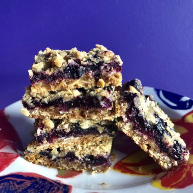 These are a quick and easy bar to whip up. The crust and crumble is made in the food processor in about two minutes, plus the best thing about blueberries (or raspberries) is that they only need a quick rinse to prepare them for baking. No hulling, pitting, peeling or chopping required!